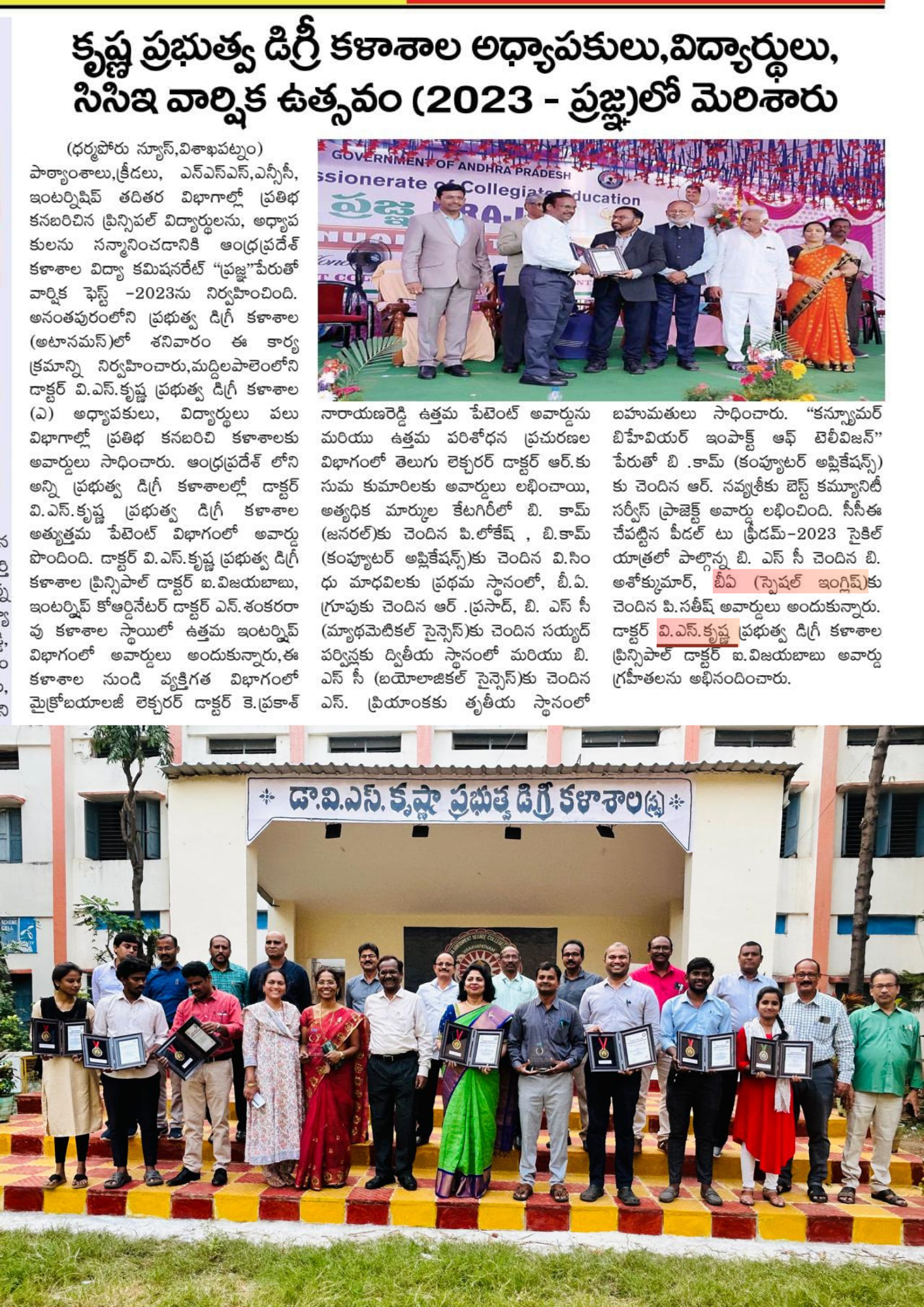 | 2 | Best Project Award (2022-2023) to P. Satish from BA Special English (III Year) | Download |