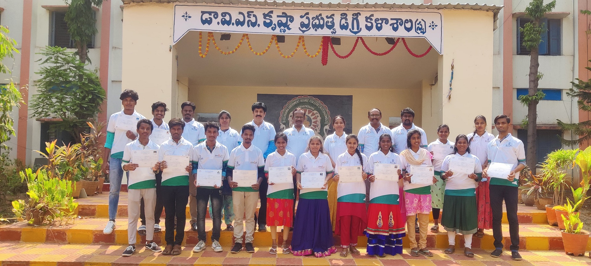 Under the Skill development activities technical, interpersonal, cognitive, and practical skills are provided. Success in both the personal and professional spheres depends on effective skill development since it improves an individual's performance and advances organizations and societies as a whole. People that place a high priority on skill development will be better able to negotiate obstacles, take advantage of opportunities, and maintain their competitive edge in their respective fields in the fast changing global scene. Dr.V.S.KRISHNA Govt. Degree College In collaboration with ANDHRA PRADESH STATE SKILL DEVELOPMENT CORPORATION we have started skill development activities from the academic year 2021-2022, the following activities are taken up so in the academic year 2022 – 2023.