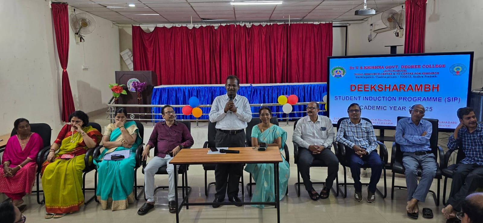 Dr. V. S. Govt. Degree and PG College Government Degree College, (then non-Autonomous) established in 1968, was inaugurated by his excellency Sri. Khandubhai K. Desai, Governor of Andhra Pradesh on 12th December 1968. The College was shifted in 1969 from the University Campus to Visakha valley school area which is 3 KMs away from the present premises. Owing to keen interest showed by District Collectors Sri C. Arjuna Rao IAS, and Sri K. V. Rao, IAS who helped in acquiring land, the college was shifted totally to its permanent premises in Maddilapalem in 1980-81.