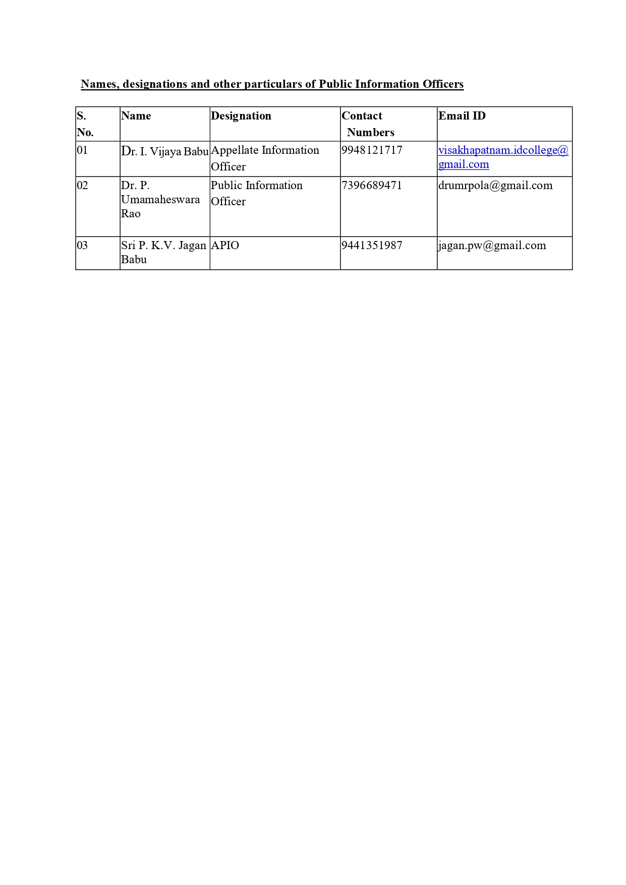 Grivance Redressal Cell